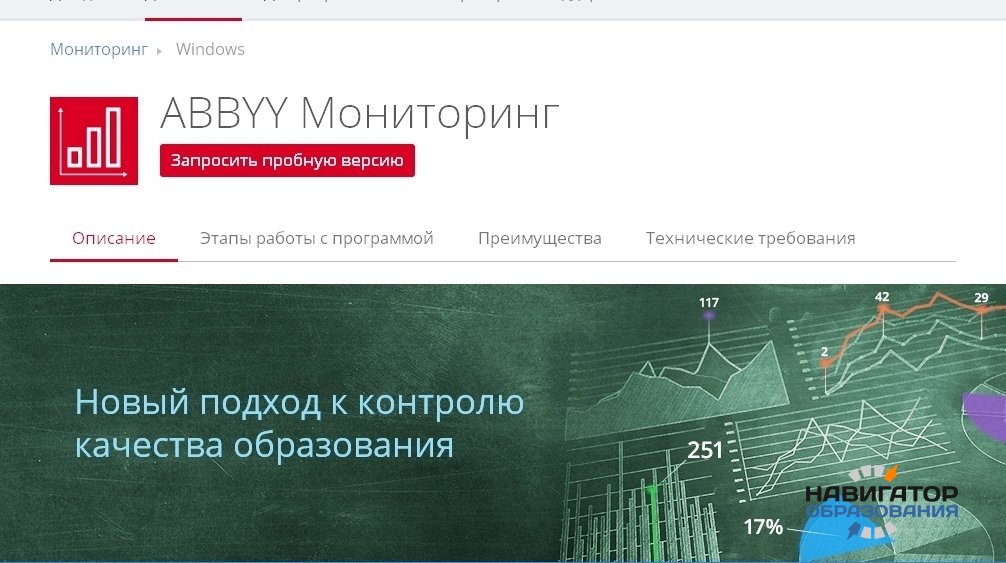 Новый онлайн-сервис от компании ABBYY позволяет проводить оценку качества образования в школах, предоставляя доступ к различным видам контрольных работ. Проект «ABBYY Мониторинг» стоимостью свыше 100 миллионов рублей нацелен на автоматизацию всех этапов мониторинга школьного образования. Он предоставляет учителям возможность пользоваться базой контрольных работ.