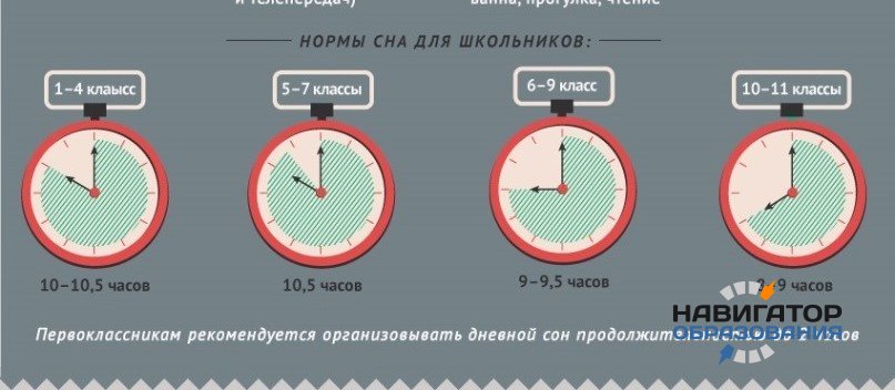 На сайте ведомства опубликованы примерные нормы продолжительности сна для учеников разных классов: 10-10,5 часов для четвероклассников, 10,5 часов для учеников пятых-седьмых классов, 9-9,5 часов для учащихся 6, 7 и 9 классов и 8-9 часов для старшеклассников. Первоклашкам необходим ещё и двухчасовой сон в дневное время.