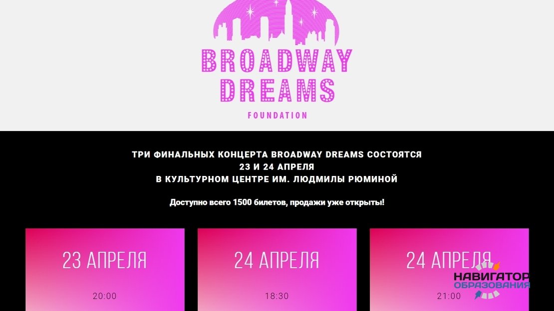 Стоит напомнить, что Москва уже в третий раз принимает проект Broadway Dreams. Впервые он состоялся в 2016 году. Предыдущие результаты зрители могли увидеть на сценах театра «Россия» и Московского Дворца молодежи. Наградой для лучших участников стала поездка в Бродвей.