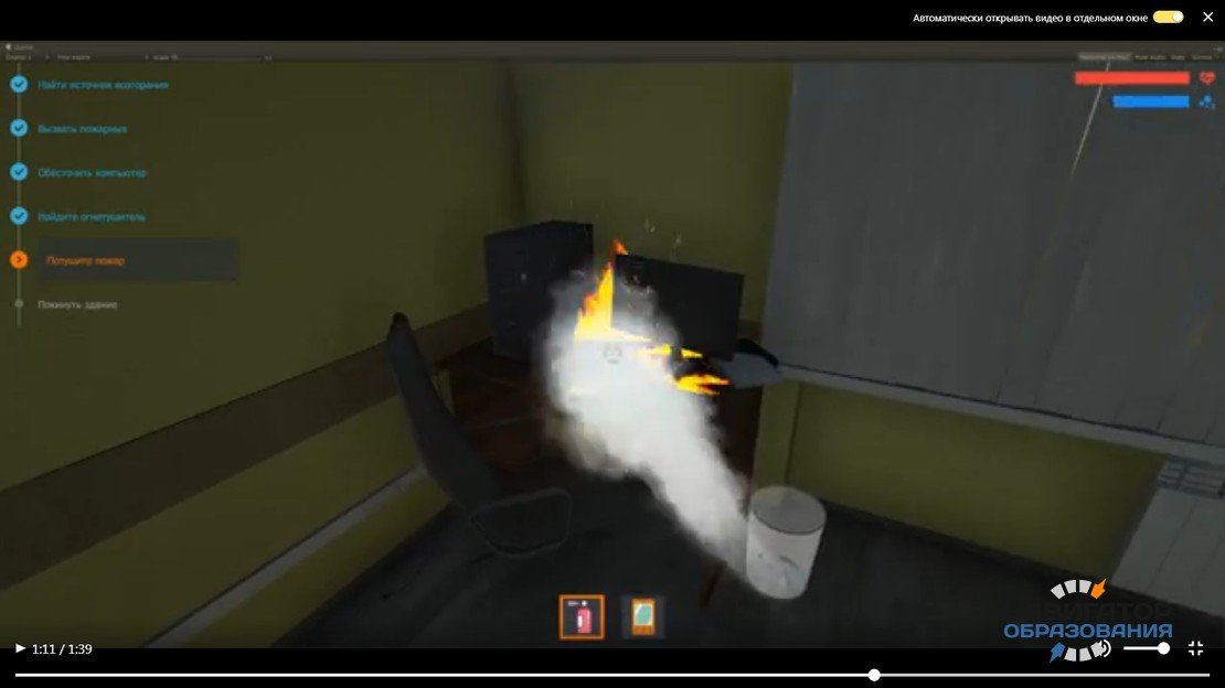 На текущий момент в наборе виртуальных инструментов почти сто различных моделей. Речь идёт об огнетушителях, гидрантах, ящиках с песком, предметах мебели и интерьера. Они позволяют воссоздать пространство с особенностями его противопожарной системы. Что же касается пилотного модуля, то он показывает сам процесс тренировки действий при пожаре в офисном здании.